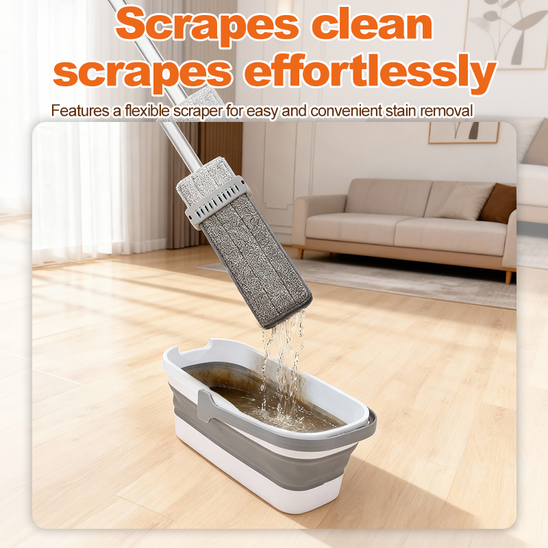 Handfree wiping microfiber flat mop + Foldable Mop Bucket with Handle