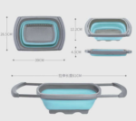 Foldable square fruit or vegetable drain basket with extensible L/R puller Size : 39*26.5*12.2cm Weight about : 450- 500 gs Material : PP+ TPR Packing : 53*40*41.5 cm (36pcs) , 28224pcs/40HQ