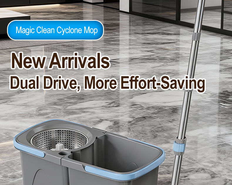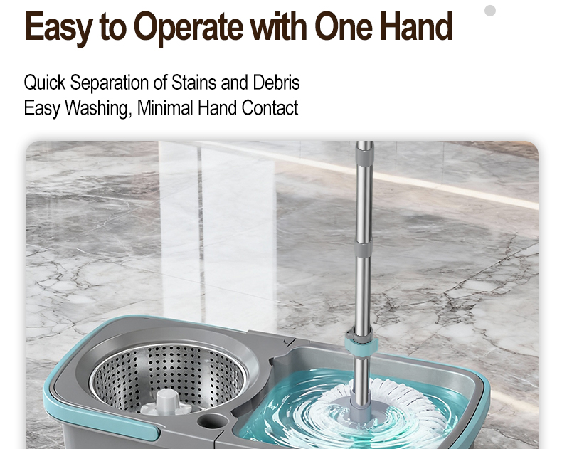 Handfree wiping microfiber flat mop + Foldable Mop Bucket with Handle